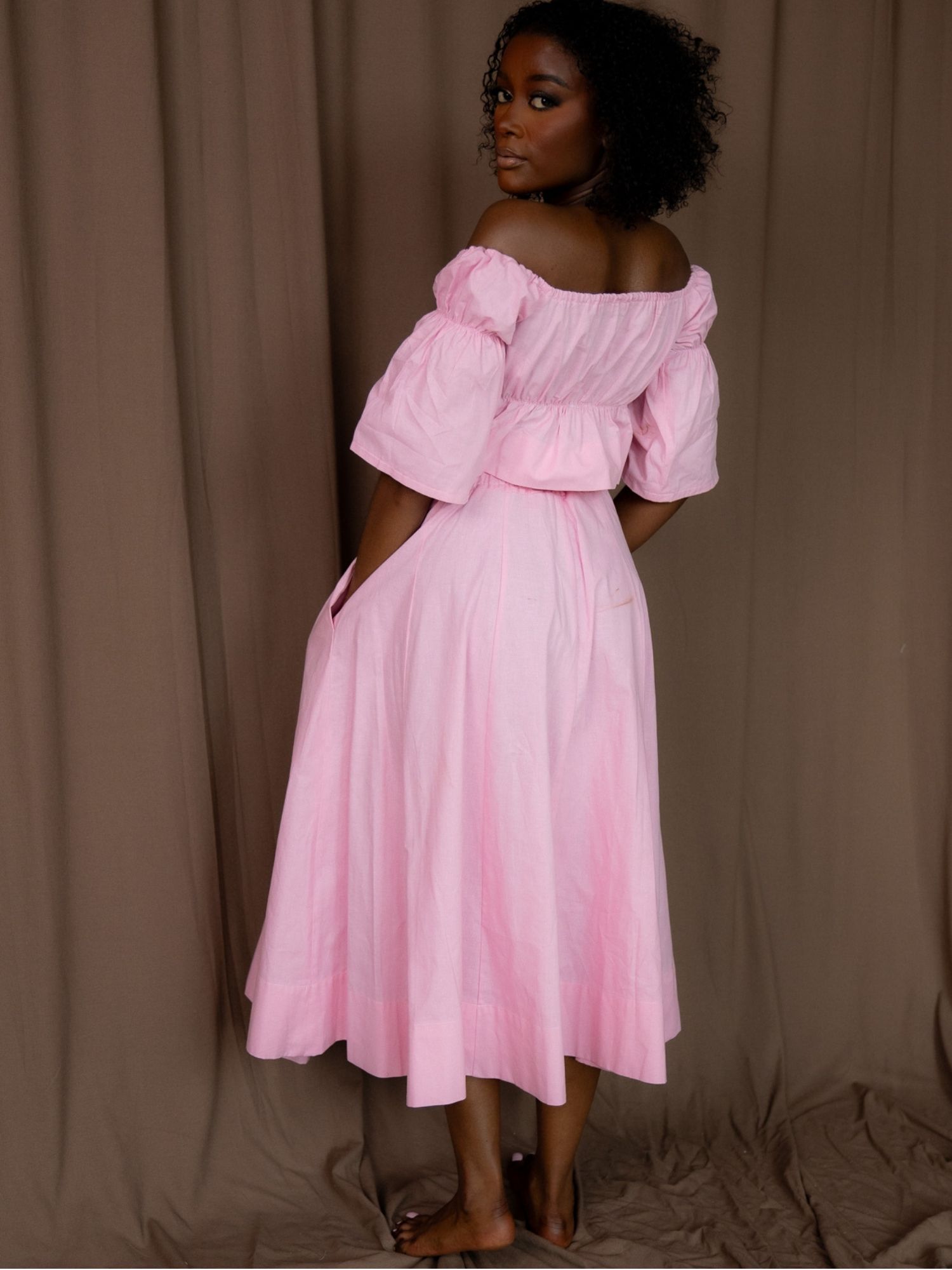 Paired with a midi-length skirt, the set flatters with a structured waistband, elasticated back for comfort, and wide hems for movement. Hidden pockets for function without compromising form.